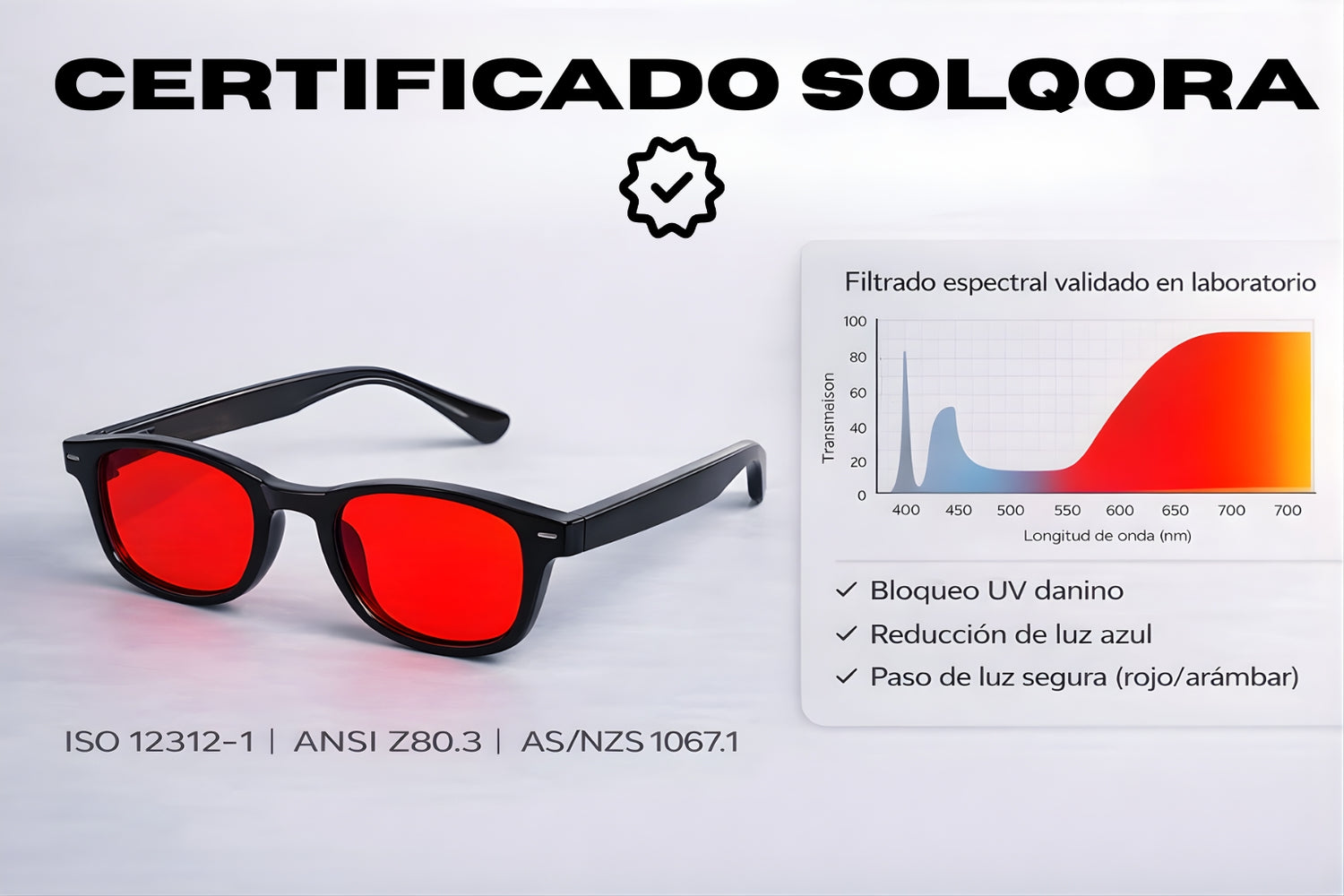 Cumplen con ISO 12312-1:2022,ANSI Z80.3-2018yAS/NZS 1067.1:2016 + A1:2021 para uso diario y seguridad óptica.